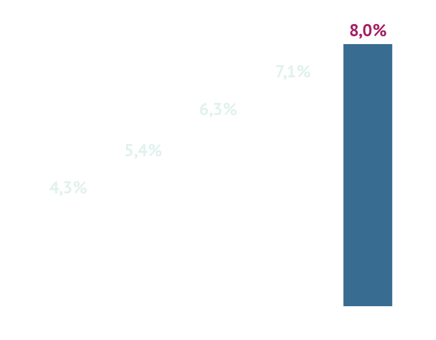Je bent volledig gericht op lange termijn vermogensgroei en accepteert daarbij een zeer hoog risico. Inkomsten uit vermogen spelen voor jou geen rol. Je beseft dat je vermogen gedurende meerdere achtereenvolgende jaren sterk in waarde kan dalen, maar verwacht dat dit op de lange termijn wordt gecompenseerd door positieve rendementen. Bij dit profiel hoort een minimale beleggingshorizon van tien jaar.